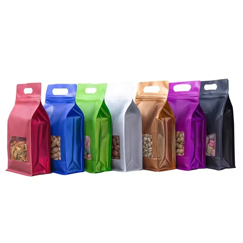 Customized Portable Eight-sided Flat Bottom Pouch Window Color Aluminum Foil Pouch Bag with hang Hole