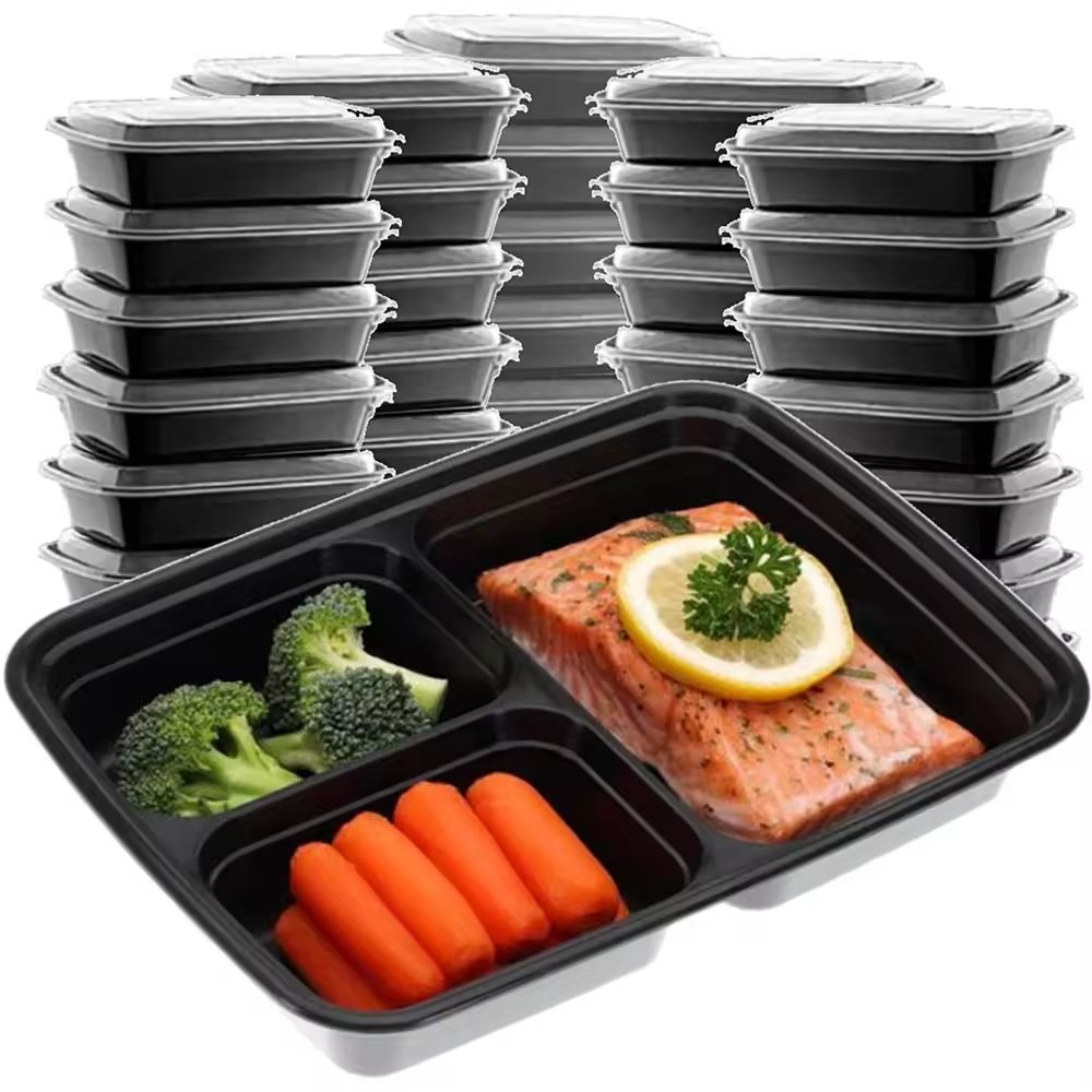 Disposable Bento Box 2 3 4 5 6 Compartments Lunch Meal Box with Lid for Rice Vegetable Dish Pancake Fast Street Food Take Away