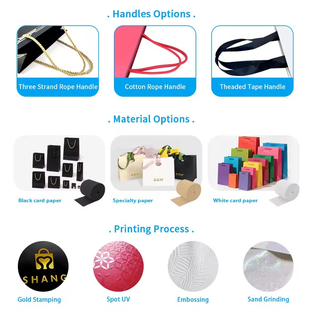 Size, paper weight, printing, and handle types can be customized to meet branding needs.